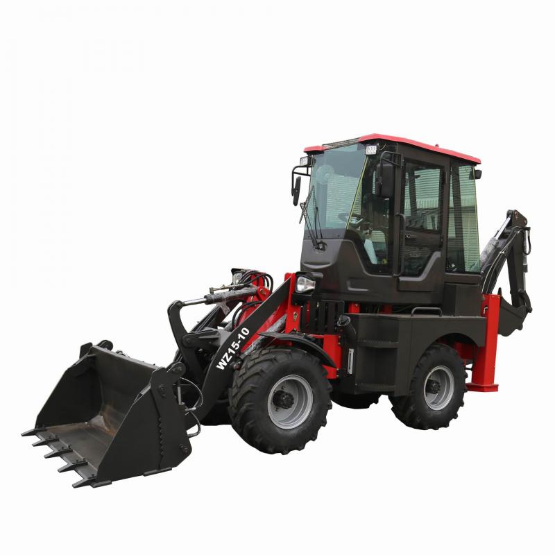 WZ15-10 Backhoe loader comes standard with adjustable front and rear instrument panels, rotating seats, sliding windows, front folding cab, front shovel mechanical pilot operation, rear digging hydraulic pilot operation, warning lights, warm air, high and low speeds, fans, and dual leg locking